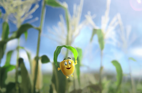 Together with the production house Glassworks we produced a corn character. For the backgrounds there were used natural corn plants and water streams. There was created a special robot holding a camera during the macro scenes. The main hero was added during composing.